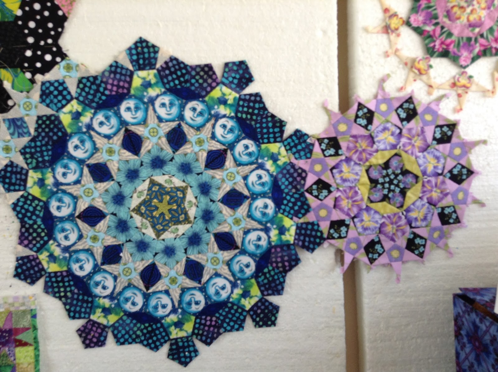 1. The New Hexagon Millefiore Quilt Along by Katsja Marek- only got to month 3 of the 12 month project and lost steam - I've posted photos of these here too 'cuz I started all gung-ho in Jan 2015 - I get so easily distracted.....